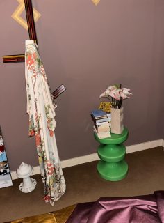 The Bishop stool was a gift from India, which makes it really special to me. We’ve been friends for a long time, and we still work together, it’s a very natural, ongoing exchange. Over the years, we’ve collaborated on different projects and with brands like cc-tapis and Villa Medici. I was first drawn to her work because of her unmistakable use of color and form. Being close to her world now, I see even more how that playful yet refined language comes to life, and this piece feels like a perfect expression of it.