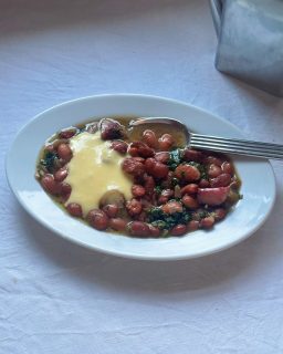 After brothy comes creamy. Pasta e Fagioli, or “pasta e fasoi” (dialect for beans), comes from Italy’s rural peasant kitchens. It’s a cucina povera dish — born out of necessity and local agriculture. Traditionally, you’d make a sofritto and a few other amendments — but we’re skipping all that in your fuss-free borlotti week.
