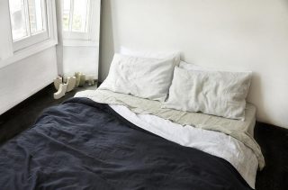 Continually matching sheeting is a commitment, whereas mixing colour with neutrals is a more relaxing bed regimen. Australian brand In Bed’s Cloud Washed Cotton Fitted Sheet makes a good off-white base. Add blue linens from Linge Particulier, or Merci’s Azure and Ink Blue, for an easy and fresh dressed look. Opting for coloured fitted sheets and pillows, instead of white, is a wise approach that will see bedding last longer.
