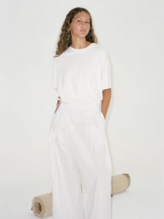 Founded by Juliette Harkness and Emma Nelson the current collection brings consists of oversized dresses with flattering and unexpected details like twisted straps, gathered sleeves or plunging necklines. The separates neatly express a love for wrapping, from modern wide trouser shapes to sculptural cardigans. The bedding compliments, in washed putty tones and timeless stripes, crafted from certified washed French linen that will continue to soften with wash and wear.