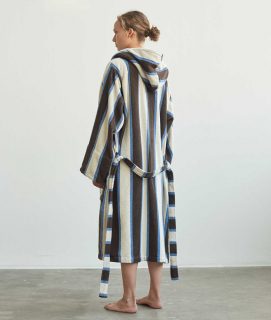 Of particular note are the bathrobes created with sea swimming in mind, an activity deeply rooted in Scandinavian culture. Evoking that comforting post-activity warmth, the bathrobes are designed for optimal absorbency with wide hoods and deep patch pockets. For the ultimate beach kit, combine with an organic cotton towel, recommended in the bold stripe option Seventies Blue or monochrome Goji Red.