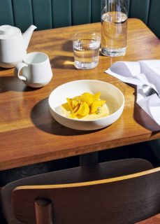 We leisurely dined on the terrace over a warm summer’s evening. A series of perfectly proportioned platters and pink wines took us into the night. This fun London setting feels super relaxed yet beautifully considered. The art nouveau arch of disused Strand Station forms a cinematic view from Toklas terrace —and at street level you’ll discover Toklas bakery and grocery store. A European-style experience for excellent patisseries, fresh bread and Martino Gamper kitchen accessories — bliss! People often talk about the chips at Toklas but regrettably we forgot to try them. The menu evolves daily and moves with the seasons — more good reasons for us to return.