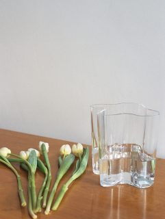 Created in 1936 by modernist architects Alvar and Aino Aalto for a glass design competition, the shape was inspired by the shoreline (Aalto happens to also mean wave in Finnish). Its undulating, curves won first prize, and the design has been in production ever since, with each piece mouth blown in Iittala’s glassworks in Hämeenlinna, Southern Finland.